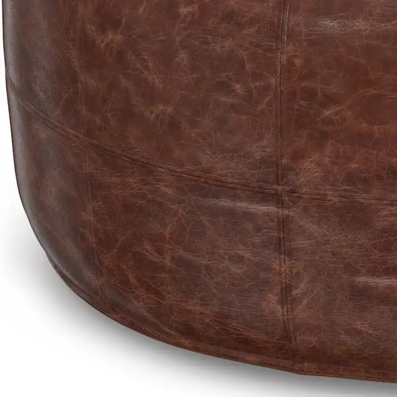 - Connor - 34" Round Coffee Table Pouf - Distressed Brown