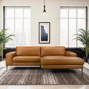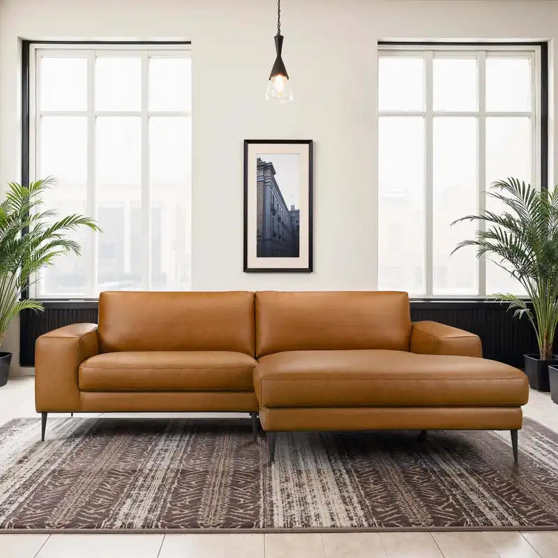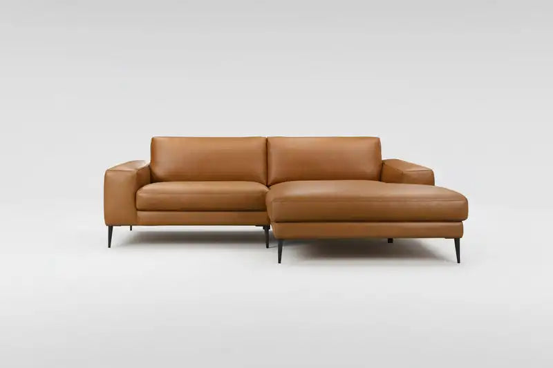 - Bring sleek sophistication to your living space with this L-shaped sectionaland chaise, a true embodiment of Mid-Century Modern design.