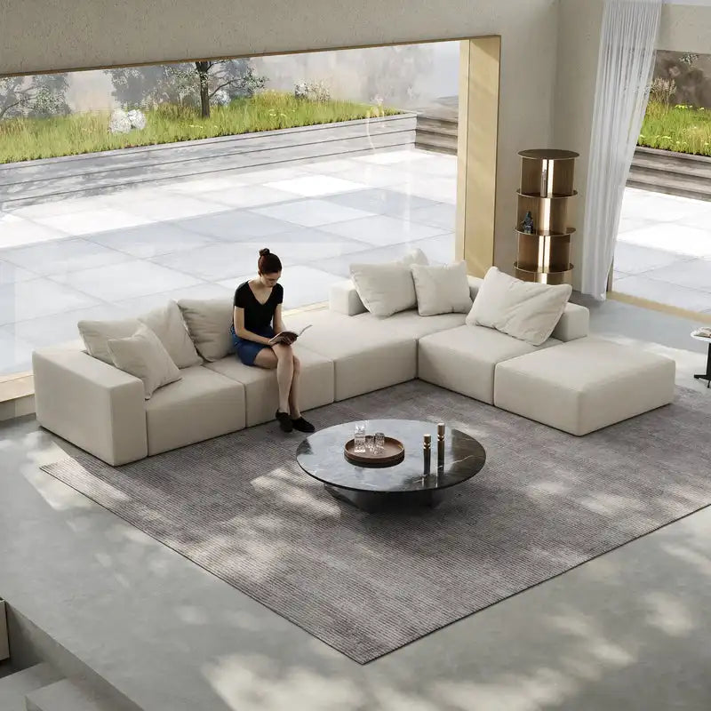 - Modular Versatility: Designed in a classic L shape that fits seamlessly against a wall to maximize space, this sectional allows for endless configuration options. Each modular piece can be rearranged freely to suit your layout, lifestyle, or design vision.