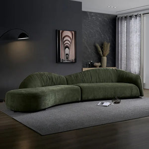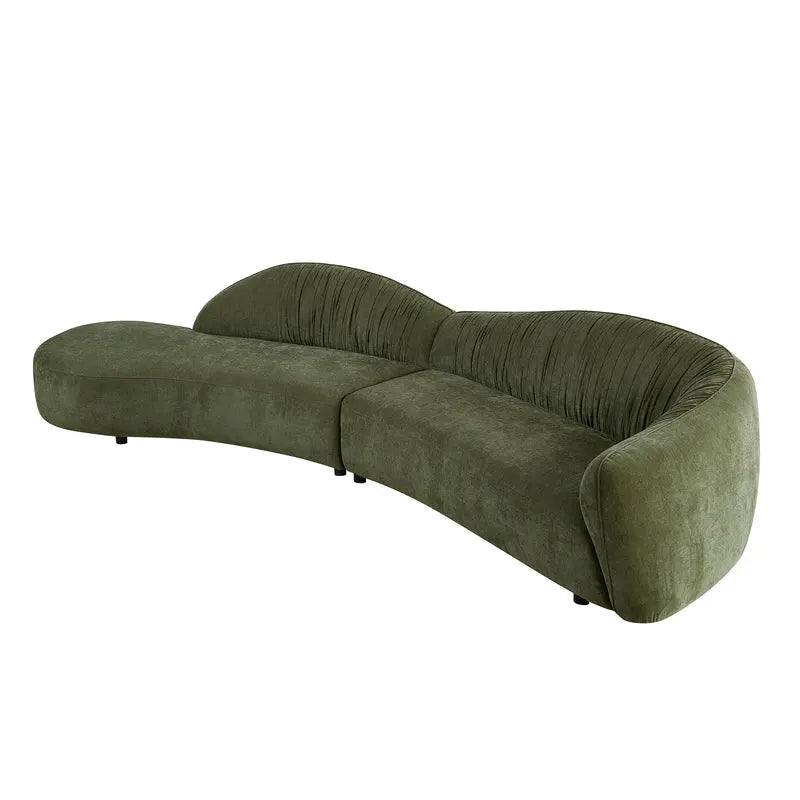 Mid-Century Modern Design: This upholstered sofa features a timeless mid-century silhouette with a left-facing chaise, offering a stylish and inviting seating solution for living rooms, bedrooms, apartments, or home offices. Finished in an elegant green fabric for a sophisticated pop of color.