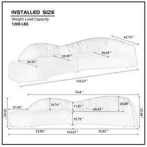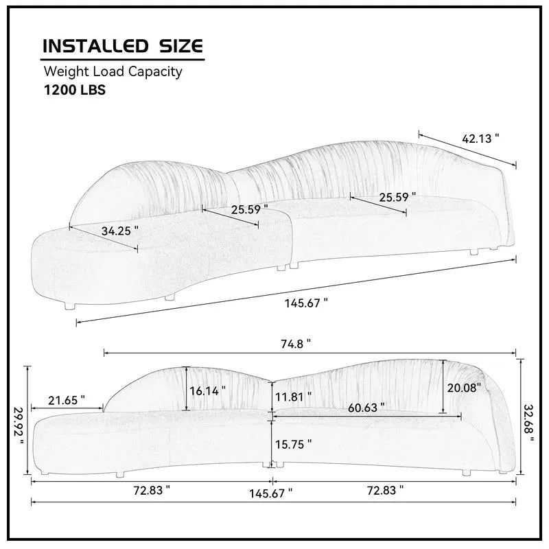 Spacious Dimensions: Overall sofa dimensions measure 145.67” W x 42.13” D x 32.68” H, creating a statement piece that balances comfort and visual presence.