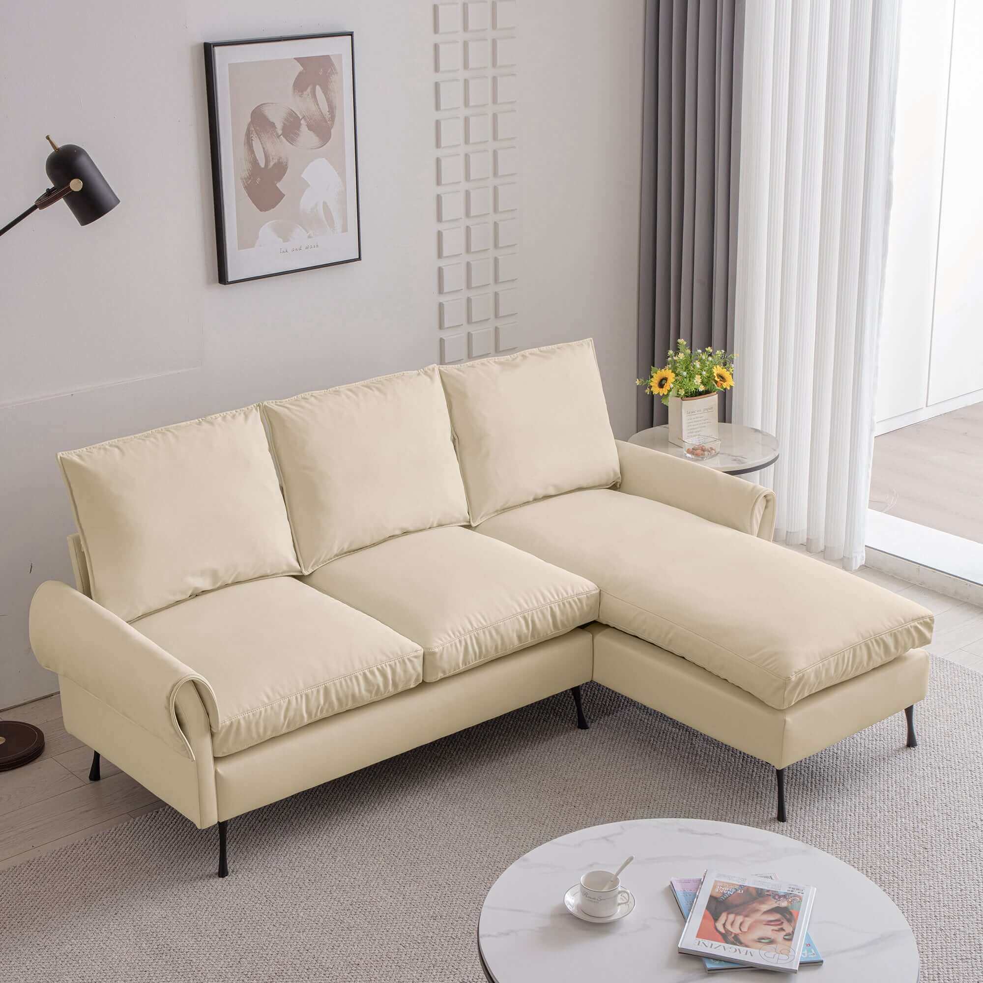 - Reversible Chaise Lounge: Enjoy the flexibility of configuring the chaise lounge on either side, adapting the sofa to your preferred layout.