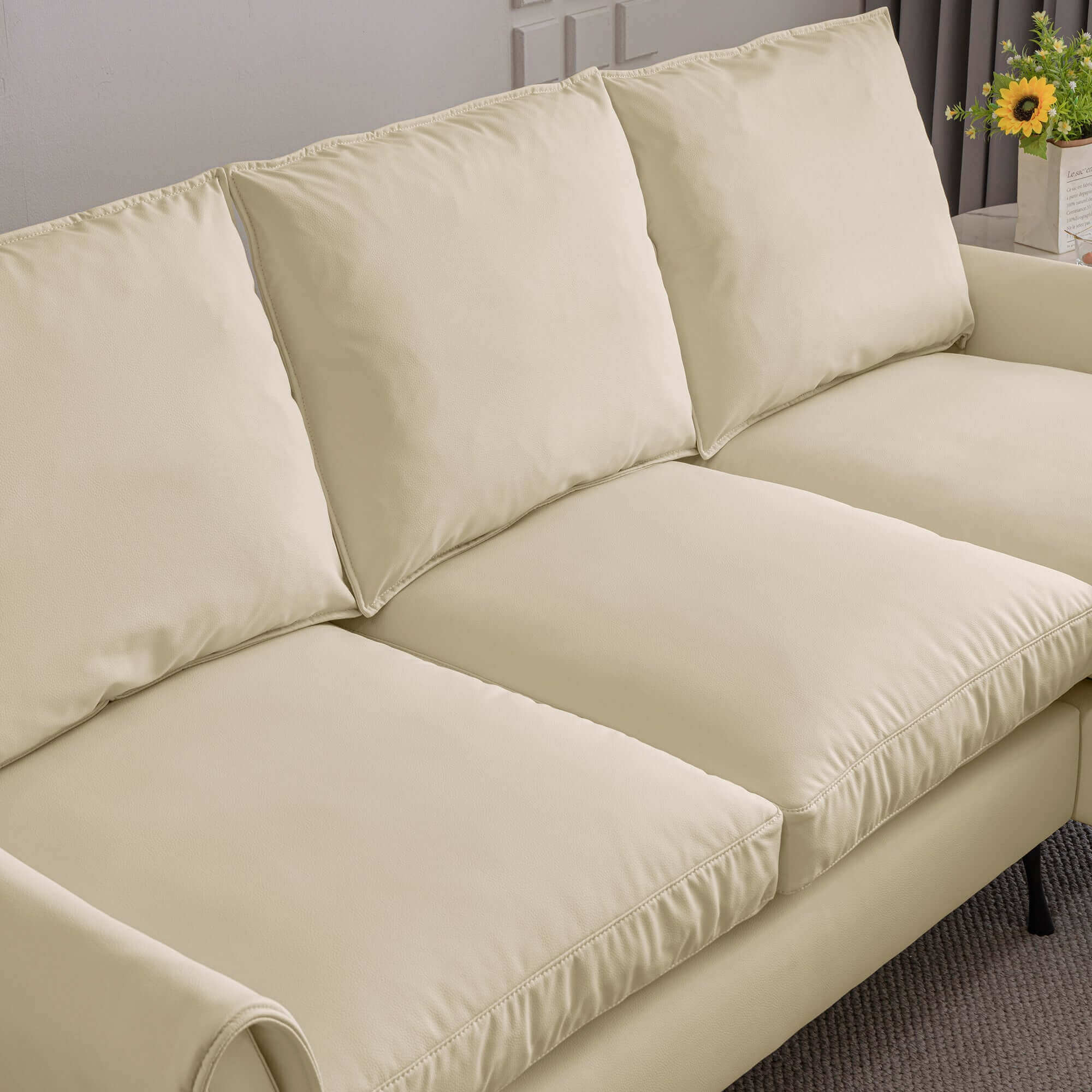 - Technical Leather Upholstery: Covered in high-quality technical leather, this sofa features in waterproof,anti-fouling,resistant,anti scratch,anti-sticking.