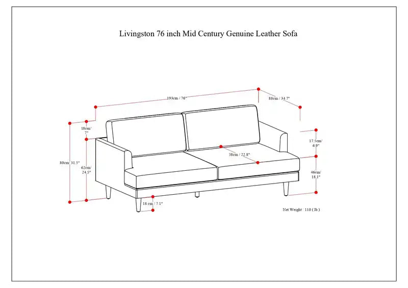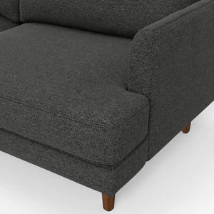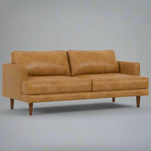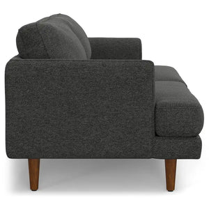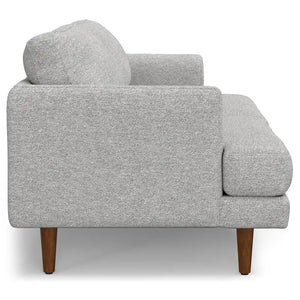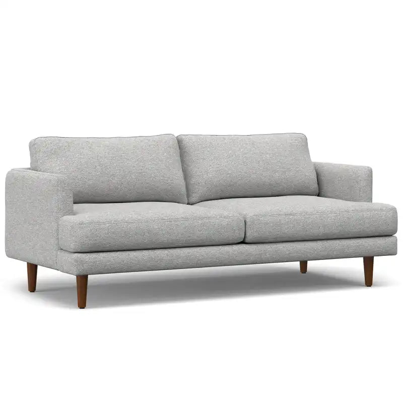 Measuring 76-inches wide and able to accommodate up to 600 lbs, this handcrafted, mid-century modern sofa is an oversized loveseat for 2 people and an ideal choice for smaller living rooms, apartments, and open-concept condos.