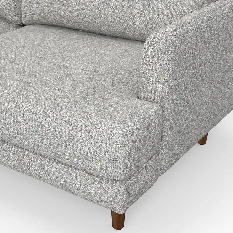 - The 2 loose back cushions are 7-inches thick and stuffed with a combination of feather and polyester fiber filling for a plush feel, while the gently curved armrests have thick foam padding on the tops and interior surfaces for an all-around cozy sitting experience.