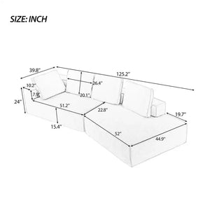 The LOUISVILLE 125" Stylish Chaise Lounge Modern Indoor Lounge Sofa Sleeper Sofa with Clean Lines for Living Room, Grey