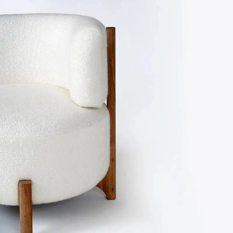 Supported by a sturdy acacia wood base, the chair balances natural warmth with contemporary minimalism. Easy to maintain and effortlessly versatile, The Luma fits beautifully in living rooms, reading nooks, or bedrooms — a refined piece that elevates any space with quiet sophistication.