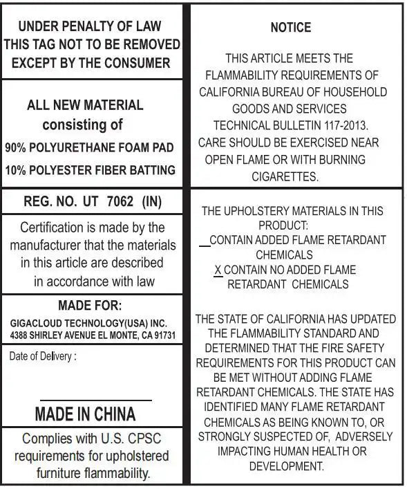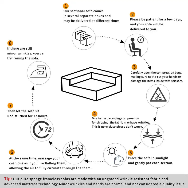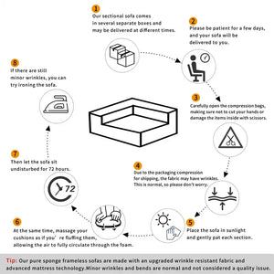 | TIP | Due to package compression for better shipment, the fabric may have wrinkles.Please take all packages out and pat every part to make it rebound better and fluffy, so that itcan restore to picture-like status. |