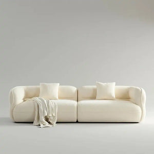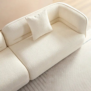 Elevate your living space with the Cozy Toast Sectional Sofa—a harmonious blend of style, comfort, and safety. Draped in luxurious white teddy velvet, its playful design recalls the warmth of toast, making it an inviting centerpiece. The high-density sponge filling offers cloud-like comfort, while the arc armrests ensure safety for both children and the elderly.