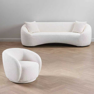 - 3+1,93.31' Minimalist Curved Sofa, 3 Seater, White Boucle Fleece Upholstered Sofa, Tight Curved Back Cloud Couch for Living Room  Apartment Office, Whit