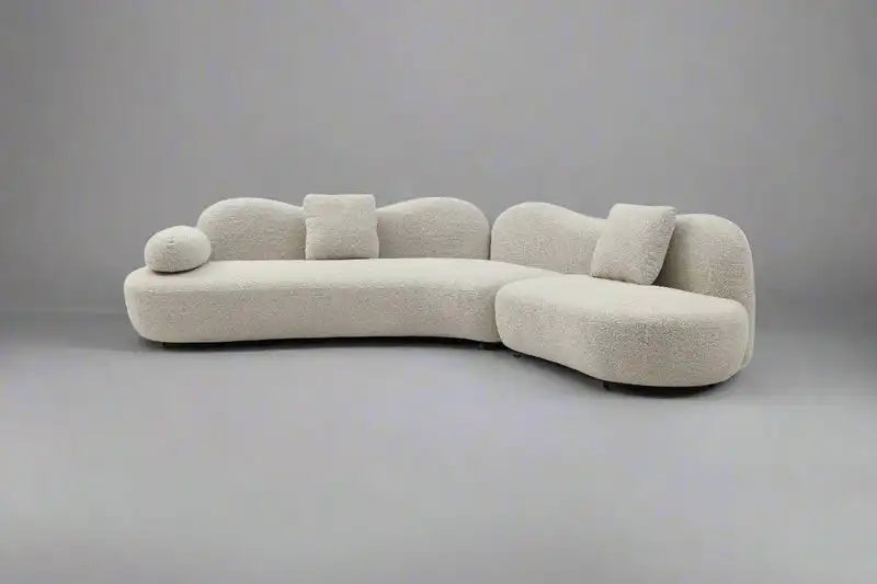 Introducing a sculptural statement in comfort—the ZYRAN sofa. Crafted on a solid wooden frame and wrapped in luxuriously soft bouclé, this sofa blends organic form with timeless elegance. Its fluid silhouette and plush cushions invite relaxation while doubling as a striking centerpiece for modern living spaces. A harmony of artistry and function, designed to elevate any interior.